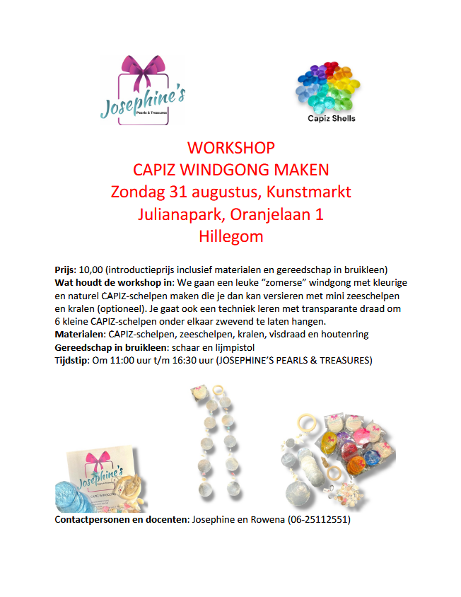 Op zondag 31 augustus a.s. vindt er een kunstmarkt plaats in Hillegom. In het Julianapark (Oranjelaan/Marijkestraat) is volop kunst te zien en te koop.